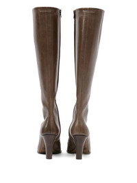 pointed-toe knee-high boots Highlights - Brown - High tapered heel - Pointed toe design Made in Italy Composition Sole: Leather 100% Lining: Leather 100% Outer: Calf Leather 100%