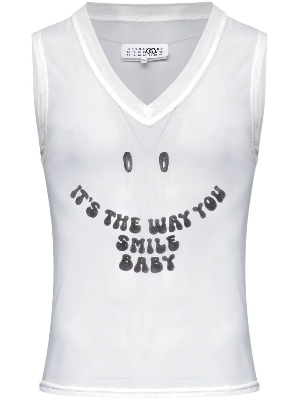 printed tank top Highlights - White - V-neck - Sleeveless - Straight hem Made in Italy Composition Polyamide 92%, Spandex/Elastane 8%
