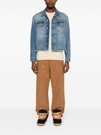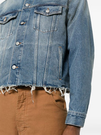 raw-cut denim jacket Highlights - Medium blue - Cotton - Denim - Signature single-stitch logo to the rear - Pointed flat collar - Long sleeves - Buttoned-cuff sleeves - Two chest flap pockets - Two side inset pockets - Raw-cut hem - Front button fastening Made in Italy Composition Outer: Cotton 100% Lining: Polyester 65%, Cotton 35% SIZE & FIT Model measurements Height 6 ft 2 in(1.88 m) Bust/Chest 36.61 in(93 cm) Hips 35.82 in(91 cm) Waist 27.95 in(71 cm) FittingInformation Designed for a regular fit, allowing for a comfortably loose fit throughout the body Sturdy and hard-wearing, this denim piece offers no stretch This piece fits true to size – take your usual size Washing instructions Machine Wash