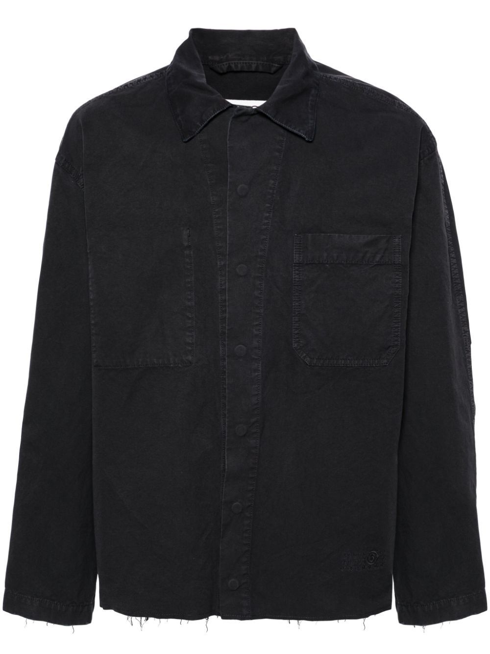 raw-hem shirt jacket Highlights - Navy blue - Cotton - Garment dyed - Classic collar - Drop shoulder - Long sleeves - Two chest patch pockets - Raw-cut hem - Concealed front press-stud fastening Made in Italy Composition Cotton 100% Washing instructions Read Manufacturer Guidelines