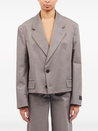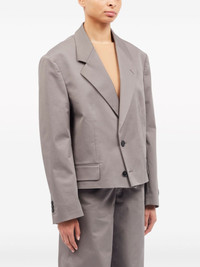 raw-hem single-breasted blazer Highlights - Grey - Cotton blend - Signature numbers motif - Logo patch at the sleeve - Notched lapels - Long sleeves - Buttoned cuffs - Front button fastening - Raw-cut hem Made in Italy Composition Cotton 97%, Spandex/Elastane 3%