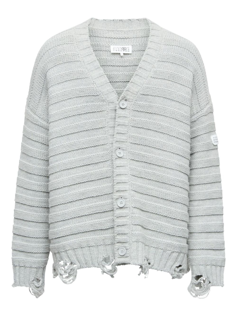 ribbed button-up cardigan Highlights - Light grey - Ribbed stripes - Button fastening - Frayed hem - V-neckline Imported Composition Virgin Wool 50%, Acrylic 50%