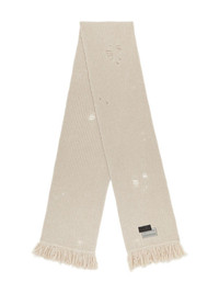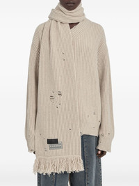 ribbed frayed-edge scarf Highlights - Beige - Ribbed knit - Frayed edges - Distressed detailing - Label detail Made in Italy Composition Wool 80%, Polyamide 20%