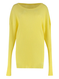 ribbed knit sweater Highlights - Yellow - Ribbed knit - Long sleeves - Boat neck - Straight hem Made in Italy Composition Viscose 64%, Polyamide 36% Washing instructions Read Manufacturer Guidelines