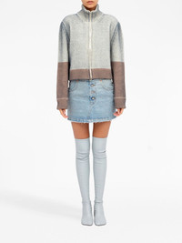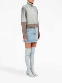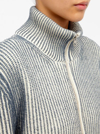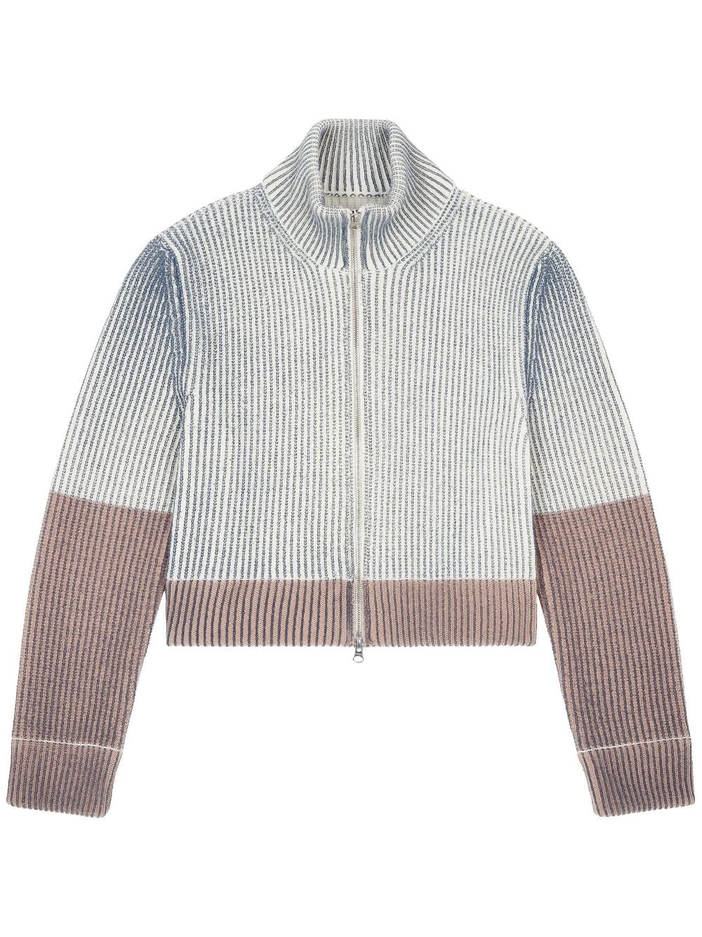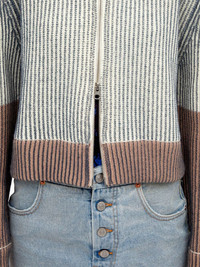 ribbed zip-up cardigan Highlights - Chamoisee/ivory white/navy blue - Virgin wool blend - Ribbed knit - Two-tone design - Silver-tone hardware - Stand-up collar - Front zip fastening - Long sleeves - Turn-up cuffs - Straight hem Made in Italy Composition Acrylic 50%, Virgin Wool 50%