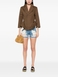 ripped denim shorts Highlights - Cerulean blue - Concealed fly and button fastening - Belt loops - Classic five pockets - Signature numbers motif Made in Italy Composition Lining: Polyester 65%, Cotton 35% Outer: Cotton 100% SIZE & FIT Model measurements Height 5 ft 10 in(1.78 m) Bust/Chest 33.46 in(85 cm) Hips 36.22 in(92 cm) Waist 23.22 in(59 cm) FittingInformation Designed for a close fit throughout Sturdy and hard-wearing, this denim piece offers no stretch Measurement HIPS 32.28 in(82 cm) WAIST 28.34 in(72 cm)