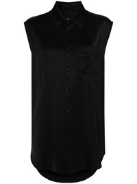 ripped-detail satin-weave shirt Highlights - Black - Satin weave - Ripped detailing to the rear - Straight-point collar - Sleeveless - Chest patch pocket - Curved hem - Unlined - Front button fastening Made in Italy Composition Viscose 100% SIZE & FIT Model measurements Height 5 ft 9 in(1.76 m) Bust/Chest 31.88 in(81 cm) Hips 35.43 in(90 cm) Waist 24.8 in(63 cm) FittingInformation Designed for a relaxed fit, this piece allows for comfort and movement when worn Made from a lightweight non-stretch fabric Washing instructions Read Manufacturer Guidelines