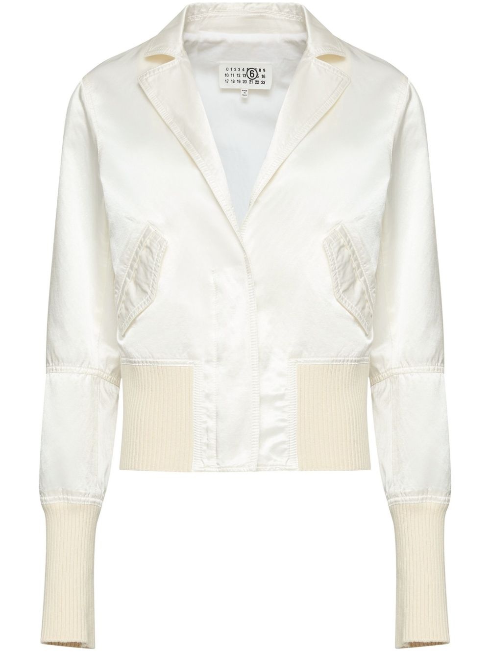 satin-finish bomber jacket Highlights - White - Front zip fastening - Notched lapels - Long sleeves - Elasticated hem Made in Italy Composition Cotton 57%, Viscose 43%