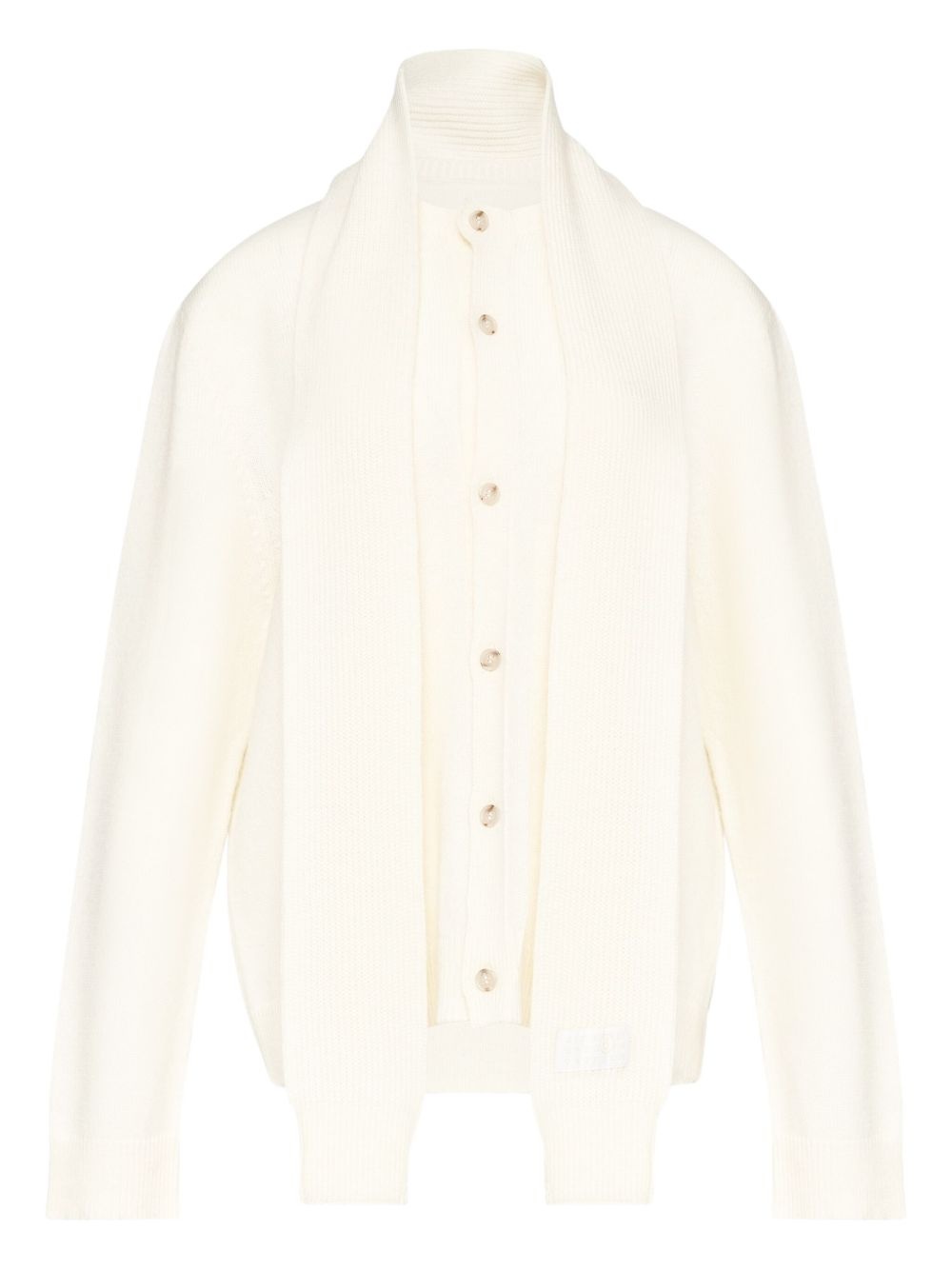 scarf-detail button-up cardigan Highlights - Ivory - Button fastening - Attached scarf detail - Long sleeves - Logo patch Imported Composition Virgin Wool 50%, Acrylic 50%