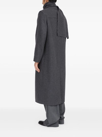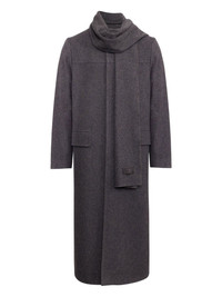 scarf-detail longline coat Highlights - Charcoal grey - Front flap pockets - Attached scarf Made in Italy Composition Wool 68%, Polyamide 27%, other fibers 5%