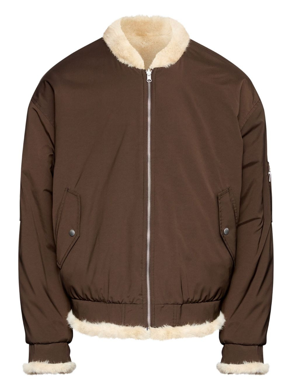 shearling-lining bomber jacket Highlights - Dark brown - Zip fastening - Faux fur trim - Welt pockets - Sleeve pocket Made in Italy Composition Polyester 100% Washing instructions Read Manufacturer Guidelines