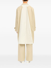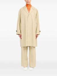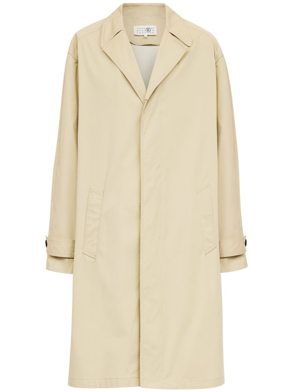 single-breasted coat Highlights - Beige - Cotton - Concealed front button fastening - Notched lapels - Long sleeves - Two side slit pockets - Belted cuffs - Curved hem Made in Italy Composition Cotton 100%
