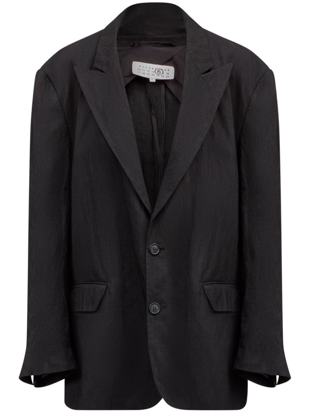 single-stitch blazer Highlights - Black - Virgin wool blend - Metallic threading - Front button fastening - Peak lapels - Shoulder pads - Long sleeves - Split cuffs - Two front flap pockets - Signature single-stitch logo - Straight hem Made in Italy Composition Virgin Wool 88%, Metallic Fibre 12%