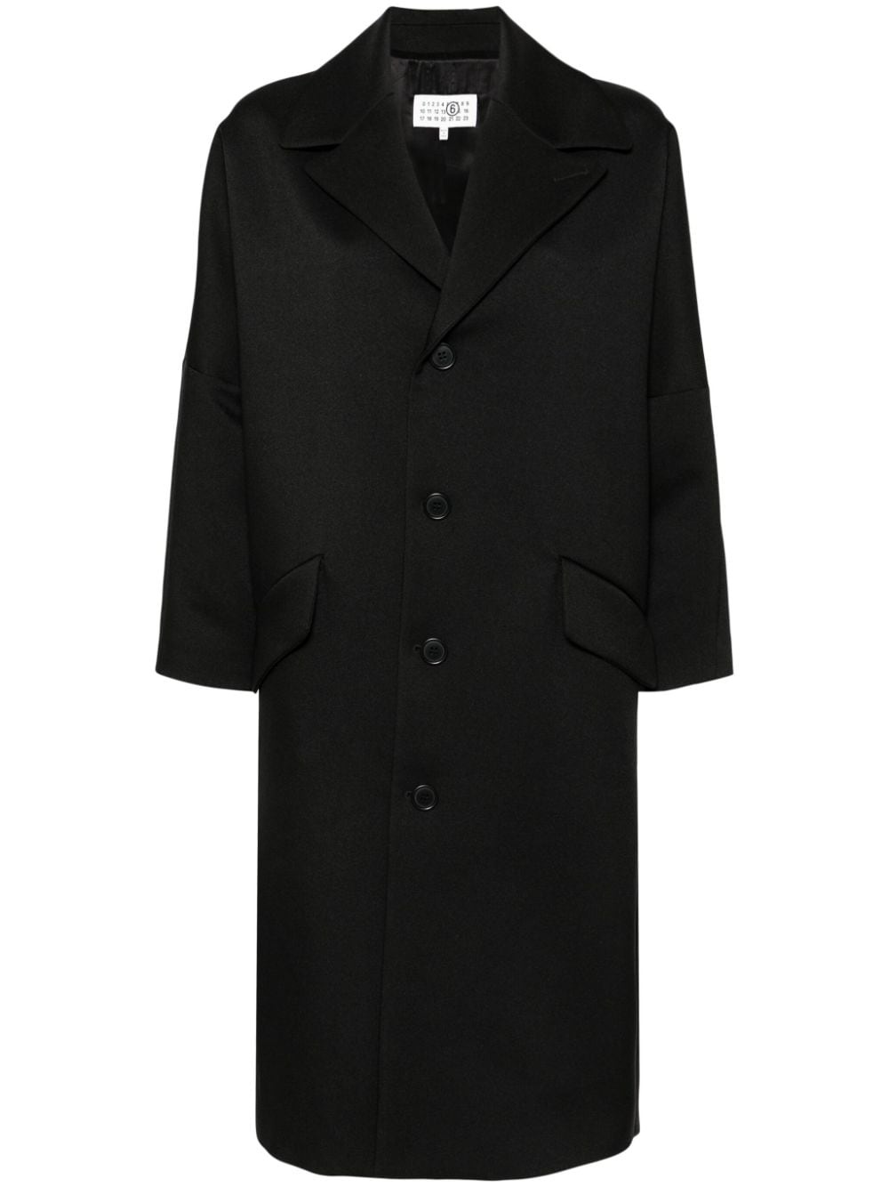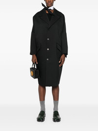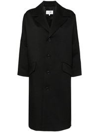 single-stitch coat Highlights - Black - Twill weave - Signature single-stitch logo - Front button fastening - Notched collar - Drop shoulder - Long sleeves - Two side flap pockets - Internal jetted pocket - Full lining - Straight hem - Mid-length Made in Italy Composition Lining: Viscose 100%, Cotton 100% Outer: Polyester 100% SIZE & FIT Model measurements Height 5 ft 10 in(1.77 m) Bust/Chest 29.92 in(76 cm) Hips 34.25 in(87 cm) Waist 23.62 in(60 cm) FittingInformation Designed for an oversized fit, offering additional room throughout Made from a midweight non-stretch fabric