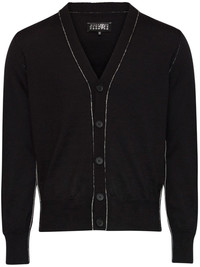 single-stitch fine-knit cardigan Highlights - Black/white - Virgin wool blend - Fine knit - Signature single-stitch logo - Contrasting trim - V-neck - Front button fastening - Long sleeves - Ribbed cuffs and hem Made in Italy Composition Virgin Wool 70%, Acrylic 30%