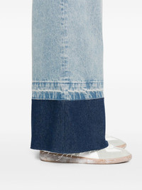 single-stitch jeans Highlights - Blue - Cotton - Denim - Layered panelled design - Signature single-stitch logo - Logo patch to the rear - High-rise - Belt loops - Concealed fly and button fastening - Classic five pockets - Flared hem Made in Italy Composition Lining: Polyester 65%, Cotton 35% Outer: Cotton 100% SIZE & FIT Model measurements Height 5 ft 9 in(1.76 m) Bust/Chest 31.88 in(81 cm) Hips 35.43 in(90 cm) Waist 24.8 in(63 cm) FittingInformation Designed with a wide leg cut, these jeans allow for a close fit at the waist and offer a loose and roomy fit over the leg Sturdy and hard-wearing, this denim piece offers no stretch This piece fits true to size – take your usual size