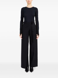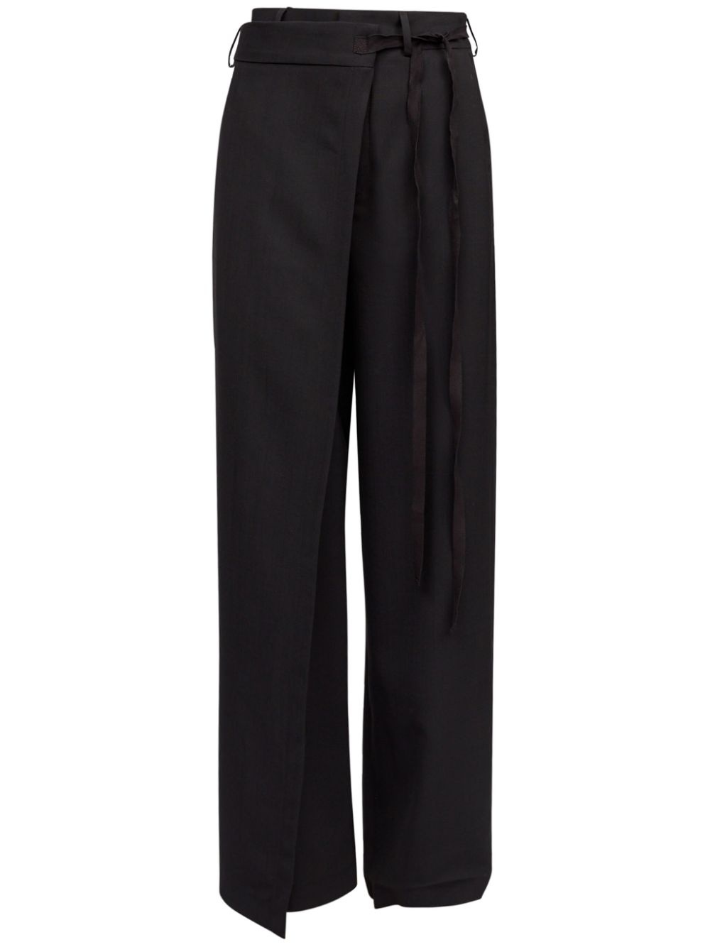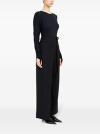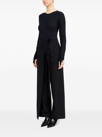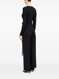 single-stitch logo flared trousers Highlights - Black - Wool - Signature single-stitch logo - Wrap design - Front tie fastening - Belt loops - Two side slit pockets - Two rear button-fastening jetted pockets - Flared design Made in Italy Composition Wool 100%