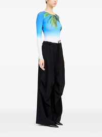 single-stitch logo flared trousers Highlights - Black - Wool - Signature single-stitch logo - Front tie fastening - Rear elasticated waistband - Belt loops - Two side slit pockets - Flared design Made in Italy Composition Wool 100%