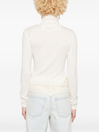 single-stitch logo sweater Highlights - Ivory white - Virgin wool blend - Asymmetric design - Knitted construction - Panelled design - Roll neck - Long sleeves - Ribbed cuffs and hem - Signature single-stitch logo to the rear - High-low hem Imported Composition Virgin Wool 50%, Acrylic 50% SIZE & FIT Model measurements Height 5 ft 9 in(1.74 m) Bust/Chest 34.64 in(88 cm) Hips 36.61 in(93 cm) Waist 26.37 in(67 cm) FittingInformation Designed for a slim fit that sits just away from the body offering a close yet comfortable fit Made with a lightweight knit, this piece offers some stretch This piece fits true to size – take your usual size