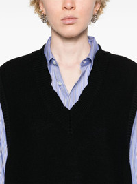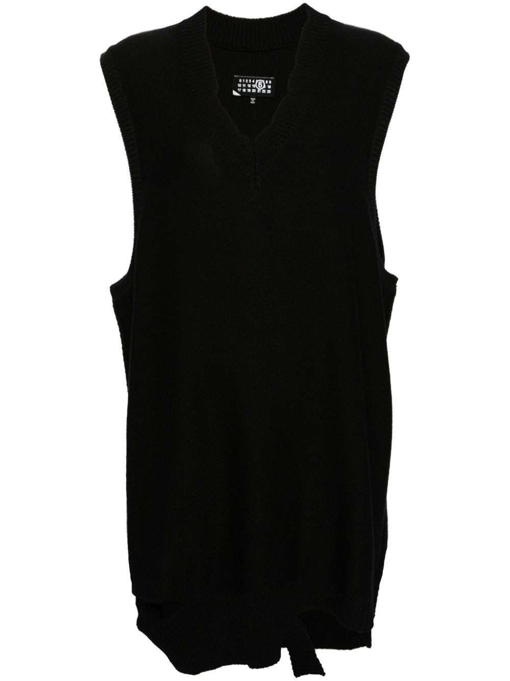 sleeveless knitted minidress Highlights - Black - Virgin wool blend - Knitted construction - Exposed-seam detailing - Ribbed v-neck - Slip-on style - Sleeveless - Ribbed hem - Distressed finish - Thigh-length Made in Italy Composition Virgin Wool 50%, Acrylic 50% SIZE & FIT Model measurements Height 5 ft 9 in(1.75 m) Bust/Chest 34.64 in(88 cm) Hips 36.61 in(93 cm) Waist 26.37 in(67 cm) FittingInformation Designed to be unstructured, offering a loose fit throughout Made with a midweight knit, this piece offers some stretch This piece fits true to size – take your usual size