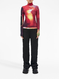 graphic-print high-neck T-shirt Highlights - Red/multicolour - Stretch-design - Space print - High neck - Long sleeves - Straight hem Made in Italy Composition Polyamide 73%, Elastane 27% SIZE & FIT FittingInformation Designed for a slim fit that sits just away from the body offering a close yet comfortable fit Made from a lightweight stretch fabric, this piece offers elasticity and flexibility when worn
