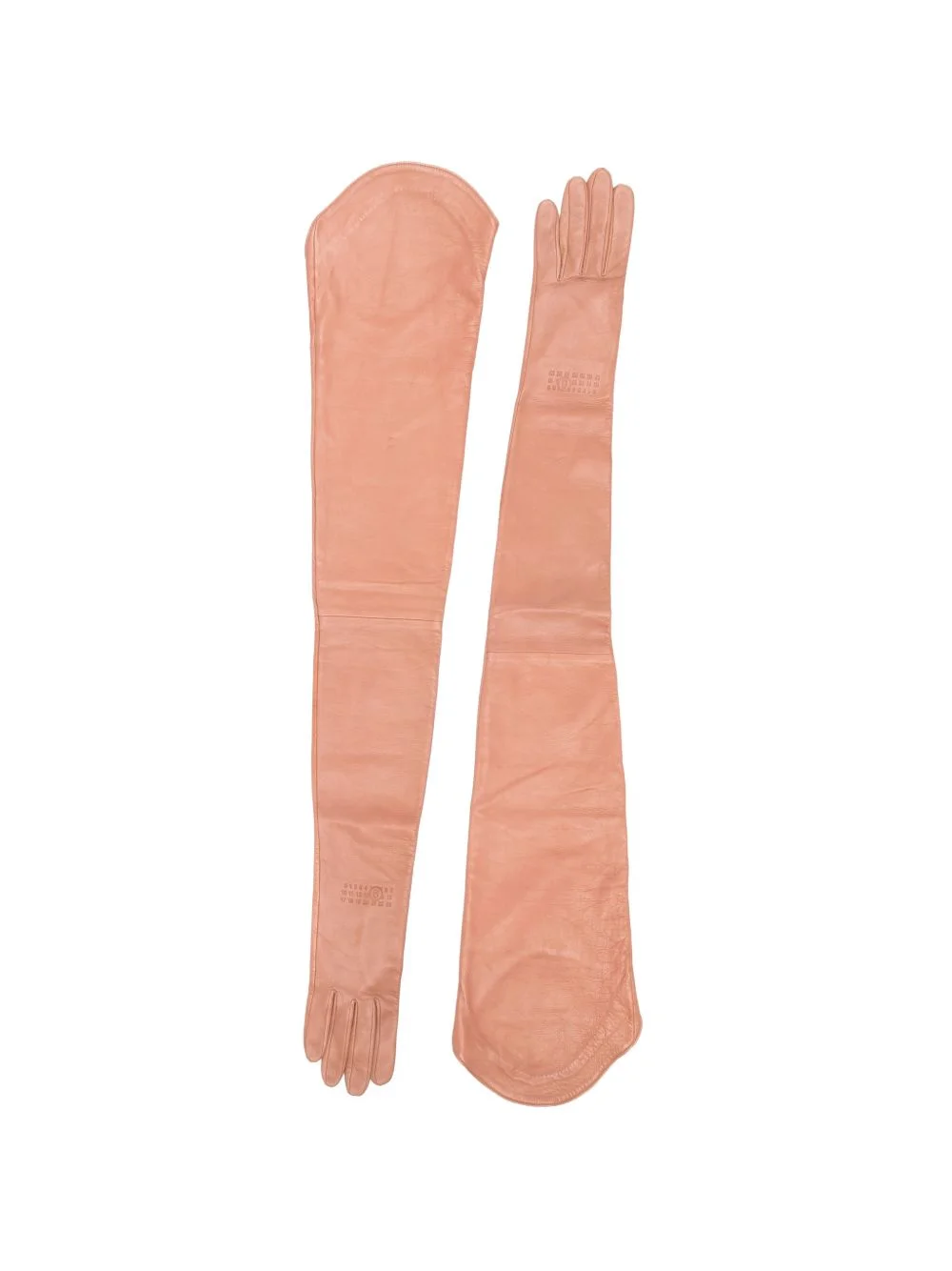stamped leather gloves Highlights - Pink - Long length - Stamped detail Imported Composition Outer: Sheepskin 100% Lining: Silk 100% Washing instructions Specialist Cleaning