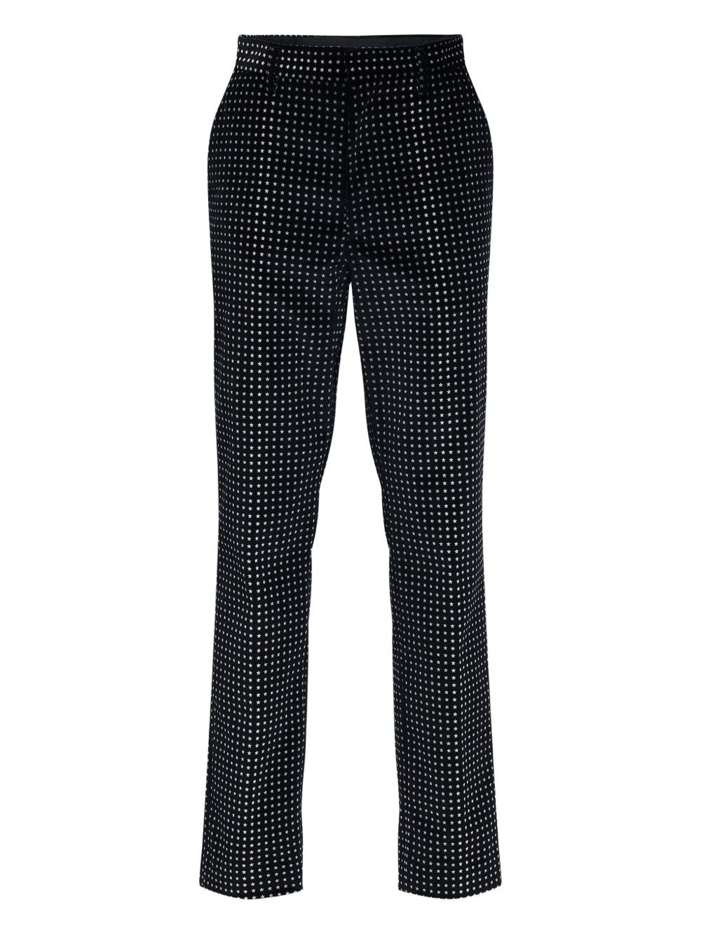 star-print tailored trousers Highlights - Black - All-over star pattern - Front pleats - Side pockets Made in Italy Composition Cotton 98%, Spandex/Elastane 2% Washing instructions Read Manufacturer Guidelines