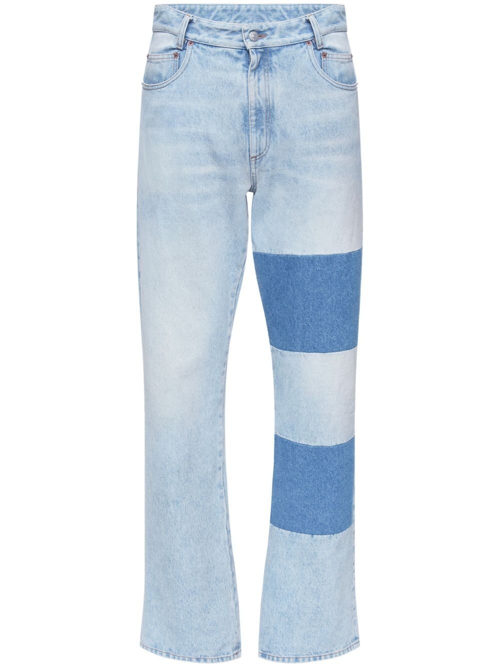 stripe-detail jeans Highlights - Light blue - Concealed fly and button fastening - Classic five pockets - Belt loops - Signature numbers motif Made in Italy Composition Cotton 100%