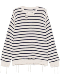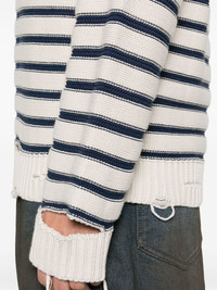 striped sweater Highlights - Light beige - Crew neck - Long sleeves - Distressed finish Made in Italy Composition Cotton 100% SIZE & FIT Model measurements Height 6 ft 2 in(1.87 m) Bust/Chest 38.97 in(99 cm) Hips 37.99 in(96.5 cm) Waist 29.52 in(75 cm) FittingInformation Designed to be unstructured, offering a loose fit throughout Made with a midweight knit, this piece offers some stretch Washing instructions Dry Clean Only