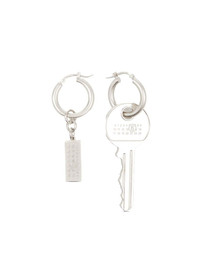 Tag and Key pendant hoop drop earrings