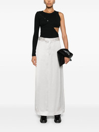 tailored satin wrap skirt Highlights - Silver-tone - Satin finish - Tailored design - Wrap design - Mid-rise - Concealed fly and button fastening - Rear tie fastening - Belt loops - Two diagonal pockets to the sides - Two rear welt pockets - Unlined - Straight hem - Mid-length Made in Italy Composition Lining: Viscose 100% Outer: Viscose 100% SIZE & FIT Model measurements Height 5 ft 10 in(1.78 m) Bust/Chest 33.07 in(84 cm) Hips 36.61 in(93 cm) Waist 24.8 in(63 cm) FittingInformation This maxi-length skirt is intended to be worn just below the waist Made from a midweight non-stretch fabric This piece fits true to size – take your usual size