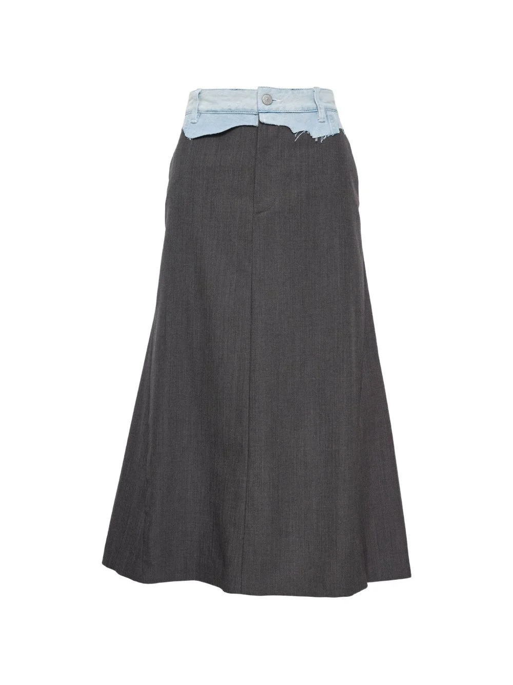 tailoring long wool skirt Highlights - Grey - Canvas - Frayed trim - A-line - Rear buttoned welt pocket Made in Italy Composition Wool 100% Washing instructions Read Manufacturer Guidelines
