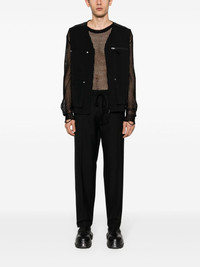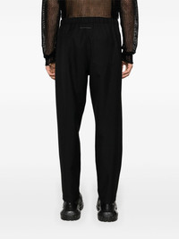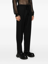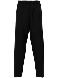 tapered-leg drawstring trousers Highlights - Black - Cotton - Contrast stitching - Elasticated drawstring waistband - Tapered leg - Two side inset pockets - Two rear patch pockets - Straight hem Made in Italy Composition Polyester 55%, Wool 45% Lining: Cotton 100% SIZE & FIT Model measurements Height 6 ft 2 in(1.87 m) Bust/Chest 36.41 in(92.5 cm) Hips 35.43 in(90 cm) Waist 29.52 in(75 cm) FittingInformation Designed for a tapered leg, offering a loose unrestricted fit over the leg with a closer fit towards the ankle Adjust this piece’s waistband to your preference using the drawstring Made from a midweight non-stretch fabric This piece fits true to size – take your usual size Washing instructions Dry Clean Only