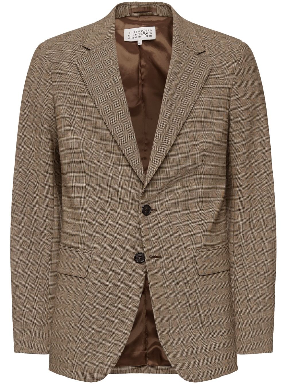 tartan-pattern blazer Highlights - Coffee brown - Front button fastening - Two front flap pockets - Buttoned cuffs - Central rear vent Made in Italy Composition Polyester 54%, Virgin Wool 44%, Spandex/Elastane 2%