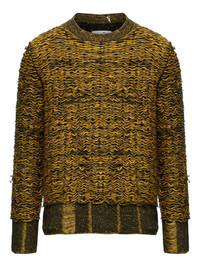 textured crew-neck sweater Highlights - Mustard yellow - Crew neck - Long sleeves - Contrast hem and cuffs - Wavy design Imported Composition Acrylic 47%, Virgin Wool 38%, Polyamide 8%, Mohair 7%