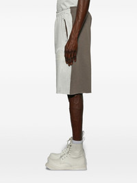 two-tone frayed shorts Highlights - Beige - Frayed edges - Elasticated waistband - Embroidered logo - Two-tone design - Side pockets Imported Composition Fabric 100% Washing instructions Read Manufacturer Guidelines