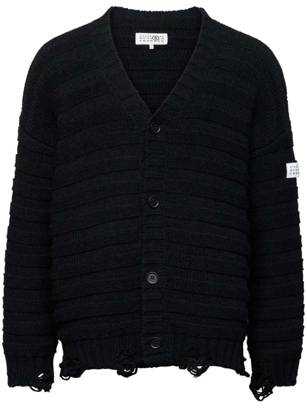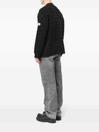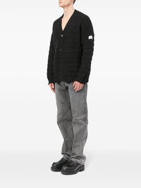V-neck knited cardigan Highlights - Black - Virgin wool blend - Knitted construction - Logo patch at the sleeve - V-neck - Front button fastening - Long sleeves - Ribbed cuffs and hem Imported Composition Virgin Wool 50%, Acrylic 50%