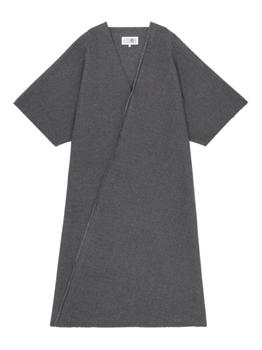 V-neck midi dress Highlights - Medium grey - Short sleeves - V-neckline - Wrap design - Raw-cut hem Made in Italy Composition Virgin Wool 100%
