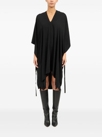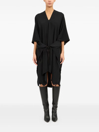 V-neck midi dress Highlights - Black - Front tie fastening - Drop shoulder - Short sleeves - Asymmetric hem Made in Italy Composition Polyester 100%