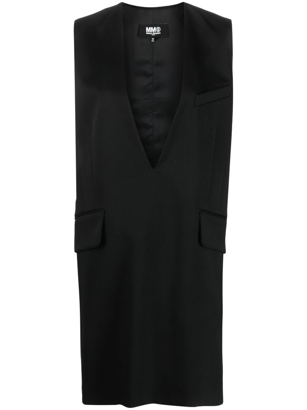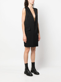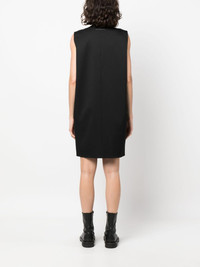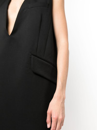 V-neck sleeveless dress Highlights - Black - Pleat detailing - Plunging v-neck - Sleeveless - Chest welt pocket - Two front flap pockets - Straight hem - Above-knee length Made in Italy Composition Outer: Polyester 54%, Virgin Wool 44%, Spandex/Elastane 2% Lining: Viscose 100% SIZE & FIT Model measurements Height 5 ft 9 in(1.76 m) Bust/Chest 33.07 in(84 cm) Hips 34.64 in(88 cm) Waist 25.59 in(65 cm) FittingInformation Designed to be unstructured, offering a loose fit throughout Made from a midweight stretch fabric, this piece offers elasticity and flexibility when worn This piece fits true to size – take your usual size Washing instructions Dry Clean Only