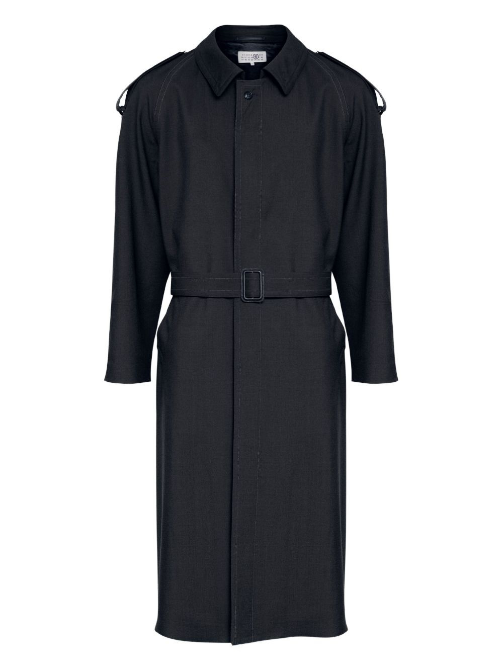 wool trench coat Highlights - Black - Belted waist - Shoulder epaulettes - Long sleeves - Button fastening - Side pockets Made in Italy Composition Virgin Wool 100%