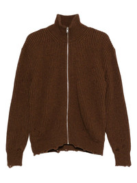 zip-front frayed cardigan Highlights - Brown - Ribbed knit - Zip fastening - Frayed edges - High neck - Long sleeves Made in Italy Composition Wool 100%, Polyamide 20% SIZE & FIT Model measurements Height 6 ft 1 in(1.85 m) Bust/Chest 35.82 in(91 cm) Hips 37.79 in(96 cm) Waist 29.13 in(74 cm) Washing instructions Dry Clean Only
