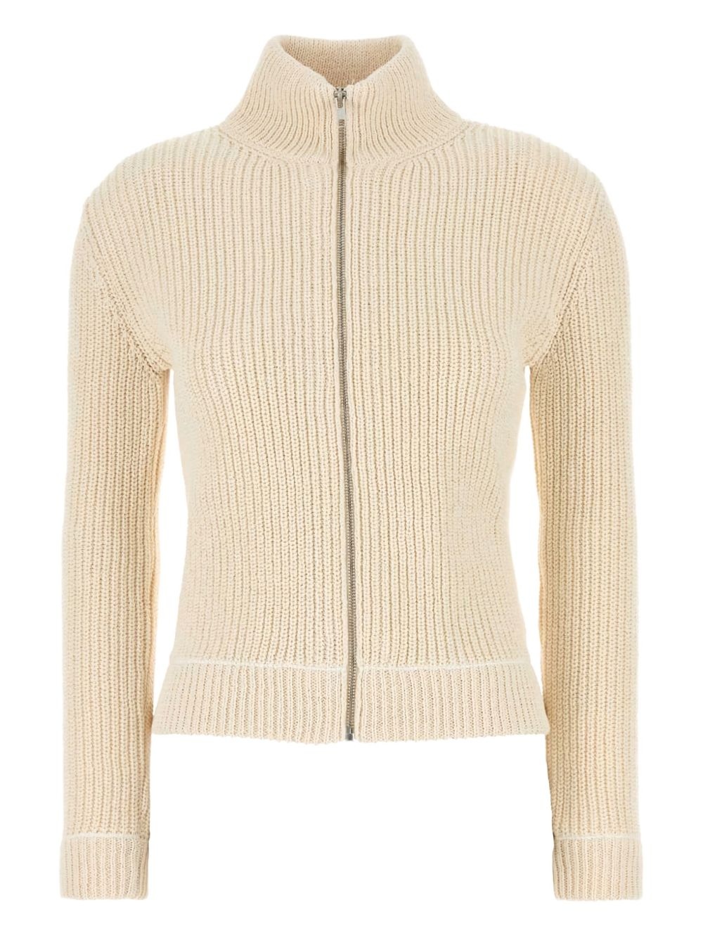 zip-up cardigan Highlights - Beige - Front zip fastening - High neck - Long sleeves - Cropped Made in Italy Composition Cotton 75%, Polyester 20%, other fibers 5%