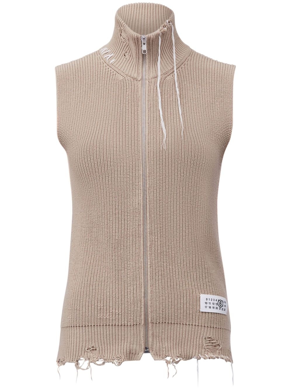 zip-up knitted top Highlights - Beige - Cotton - Chunky knit - Distressed finish - Front zip fastening - Funnel neck - Sleeveless - Contrast stitching - Signature single-stitch logo - Signature numbers motif Made in Italy Composition Cotton 100%