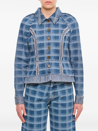 checked denim jacket Highlights - Blue - Checked pattern - Buttoned front closure - Collared neck - Frayed detailing - Seam detailing Made in Italy Composition Cotton 100% Washing instructions Read Manufacturer Guidelines