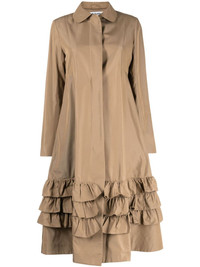 Lacey ruffled coat Highlights - Light brown - Cotton blend - Gathered ruffles - Rounded collar - Long sleeves - Concealed front button fastening - Straight hem - Calf-length Made in United Kingdom Composition Outer: Polyester 70%, Cotton 30% Lining: Polyester 100% SIZE & FIT Model measurements Height 5 ft 10 in(1.77 m) Bust/Chest 31.49 in(80 cm) Hips 35.43 in(90 cm) Waist 25.19 in(64 cm) FittingInformation Designed to be unstructured, offering a loose fit throughout Made from a midweight non-stretch fabric This piece fits true to size – take your usual size Washing instructions Hand Wash