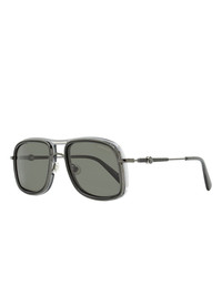 223 back-plate navigator-frame sunglasses Highlights - Grey - Navigator shape - Acetate back-plate on the front - 100% uv protection - These glasses come with a protective case. Made in Italy Composition Metal 100%, Plastic 100% SIZE & FIT Measurement Arm Length 5.7 in(14.5 cm) Lens Diameter 2.2 in(5.6 cm) Bridge Width 0.78 in(2 cm)