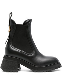 70mm Gigi boots Highlights - Black - Calf leather - Smooth grain - Pull-on style - Mid block heel - Branded heel counter - Pull-tab at the heel - Elasticated side panels - Square toe - Branded insole - Leather lining - Rubber lug sole Made in Italy Composition Leather 100% Sole: Rubber 100% Lining: Calf Leather 100% SIZE & FIT Measurement HEEL 2.55 in(6.5 cm) Sole height 0.98 in(2.5 cm)