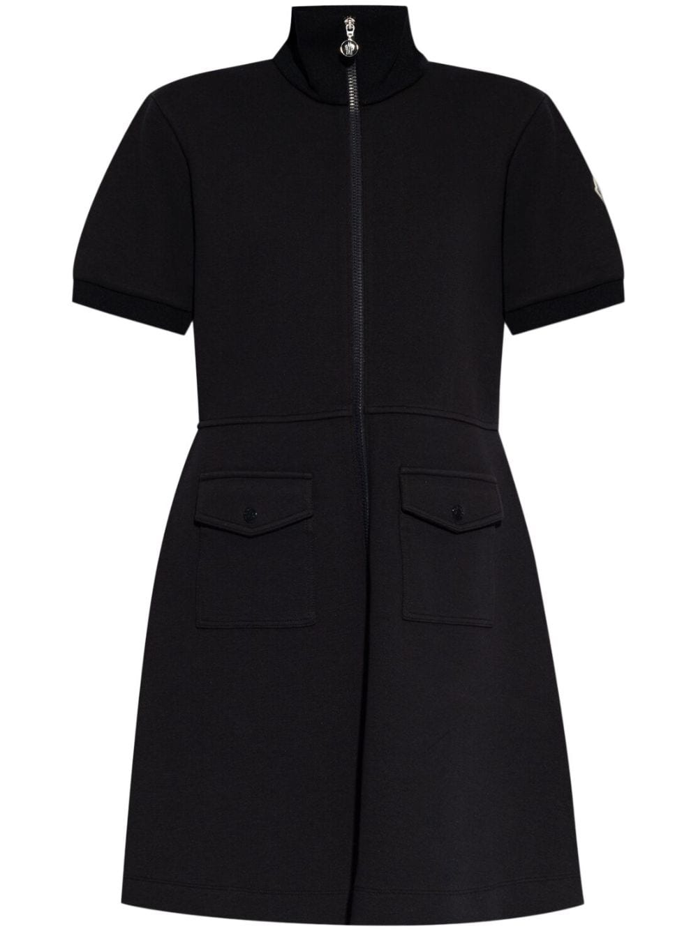 A-line pique dress Highlights - Black - Cotton blend - Pique weave - Mock neck - Front zip fastening - Short sleeves - A-line - Straight hem - Above-knee length Made in United Kingdom Composition Cotton 57%, Polyester 38%, Elastane 5% SIZE & FIT Measurement LENGTH 38.58 in(98 cm) WAIST 36.22 in(92 cm) HIPS 45.66 in(116 cm)