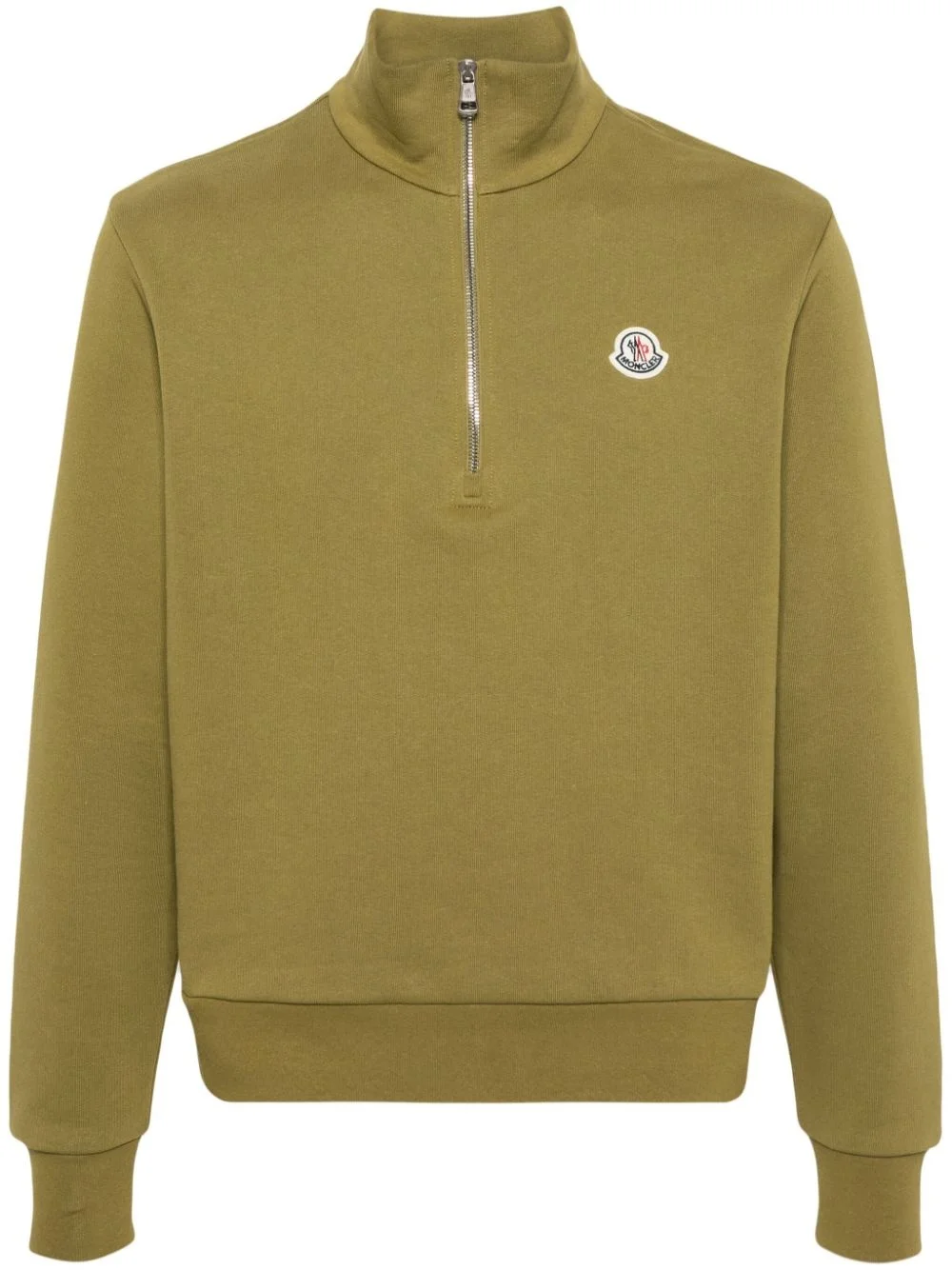 applique-logo cotton sweatshirt Highlights - Moss green - Cotton - Jersey texture - High neck - Long sleeves - Applique logo to the front - Ribbed cuffs and hem - Short front zip fastening Imported Composition Cotton 100% SIZE & FIT Model measurements Height 6 ft 2 in(1.88 m) Bust/Chest 36.61 in(93 cm) Hips 35.82 in(91 cm) Waist 27.95 in(71 cm) FittingInformation Designed for a regular fit, offering a comfortable loose fit throughout the body Made from a midweight non-stretch fabric, this piece offers minimal elasticity when worn This piece fits true to size – take your usual size Washing instructions Machine Wash